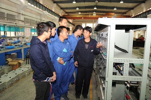 在周二做完早操,船舶公司的副總經(jīng)理帶我們來到車間。在這個(gè)車間里,我看到了一套完整的駕控臺,甚是震驚,因?yàn)樵趯W(xué)校一直學(xué)習(xí)的是理論知識,偶爾在書本上電腦上看見駕控臺的圖片,如今一套完整的駕控臺在我面前,讓一個(gè)從小擁有船長夢的孩子多么歡喜。上午,副總耐心的給我們講解駕控臺的每一個(gè)零件的功能和操作,我聽得仔仔細(xì)細(xì),恨不得將每一個(gè)零件銘記于心。在接下來的幾天,部長師傅讓我們認(rèn)識了很多公司生產(chǎn)的零件。由于我們才接觸最基本的專業(yè)課,師傅講的很多我們都不太懂,師傅都細(xì)心地給我們解釋,在校外也能有這么負(fù)責(zé)的老師進(jìn)行細(xì)心輔導(dǎo),真的感覺我們實(shí)在是幸運(yùn)了。特別是當(dāng)知道老師為了上午給我們講課,每天晚上都得加班把當(dāng)天的工作給完成,驚嘆之余,我更多的是