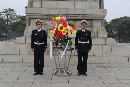 4月1日下午,我們在系教員常路賓帶領下,來到位于錦州的遼沈戰(zhàn)役紀念館,向英雄紀念碑敬獻花籃。儀式在雄壯激昂的《獻花曲》中拉開序幕,兩名禮兵邁著鏗鏘有力的禮步將花籃緩緩送到紀念塔正前方?;ɑ@挽聯上寫道:“功業(yè)常齊天地永,紅旗自由后人擎;中國人民解放軍海軍工程大學敬挽?!痹谥鞒秩说慕M織下,我們統一脫帽,向烈士紀念塔默哀一分鐘。并重溫了入伍宣誓。最后,教員對我們說道:“同志們,歷史證明,強國必先強軍。今天的你們是以共和國未來海軍軍官的身份來到此地,更應當學習先烈們的優(yōu)秀品質,不斷磨礪自己,努力提升自己,在強軍興軍的征程上奉獻自己的青春熱血!”