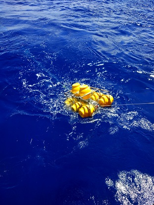 在船上的54天里,我們布放了14套潛標(biāo),回收了11套潛標(biāo),累計(jì)布放803件,回收了294件,其中也包括我們所生產(chǎn)的ADCP。雖然我主要負(fù)責(zé)我們的設(shè)備,但也負(fù)責(zé)了所有的潛標(biāo)布放,而在布放的過(guò)程中,最常見(jiàn)的天氣就是高溫炎熱,因?yàn)榇耙恢痹诔嗟栏浇鳂I(yè),所以船甲板溫度在40度以上,我們常常頂著毒辣的太陽(yáng)在甲板上布放,也讓布放增加了難度,而還有個(gè)自然因素就是以迅雷不及掩耳之勢(shì)襲來(lái)的暴雨,我們經(jīng)常在暴雨中連續(xù)作業(yè),全身都濕透了,也只能頂著暴雨堅(jiān)守戰(zhàn)地。而值得一提的是當(dāng)大風(fēng)以20m/s速度襲來(lái)時(shí),浪花直接拍到了6層駕駛室的玻璃上,仿佛將要把我們吞沒(méi),此時(shí)看著浩瀚無(wú)邊的海洋,一道道波浪不斷涌來(lái),撞擊在船體上,發(fā)出天崩地裂的吼聲,噴濺著雪白的泡沫。是那樣的壯觀。當(dāng)一切都回歸平靜的時(shí)候,又是那樣的云淡風(fēng)輕。